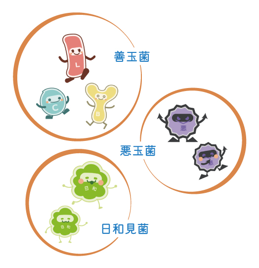 そして日和見菌については、その正体についての詳細は判っておりませんが、善玉菌が優勢な時には善玉菌のほうに、そして悪玉菌が優勢なときには悪玉菌に加担することが知られています。