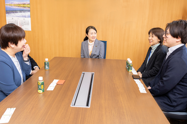 和光市長の柴﨑光子氏が弊社にお越しくださいました。そもそものきっかけは、弊社が応援する卓球チーム・T.T彩たまの選手による和光市総合体育館のイベントに、柴﨑市長がご来場になられた際、社長の小野寺からご挨拶をさせていただいたことからでした。以降、同じく弊社が応援する自転車競技・梶原悠未選手の試合や、和光市商工会のイベントでも、柴﨑市長からお声掛けくださり、市長の気さくで飾らないご性格にすっかり私たちも打ち解けて、お話をさせていただく機会が増えました。